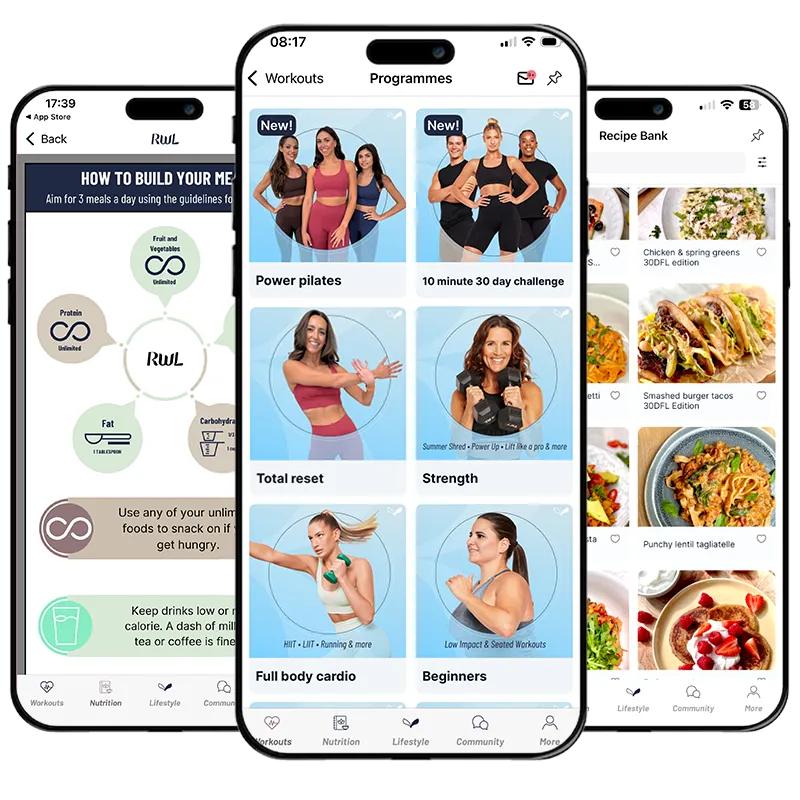 Online App for Women: 60+ workout plans, 6,000+ fun workouts, 2,000+ recipes, expert chats, community groups, outstanding support.